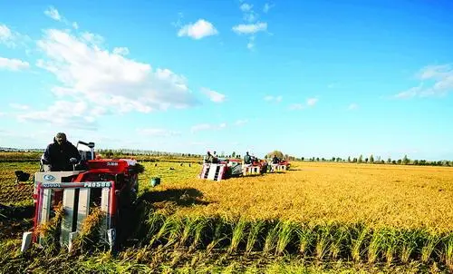 海口江东田园项目收割首批9万斤稻谷